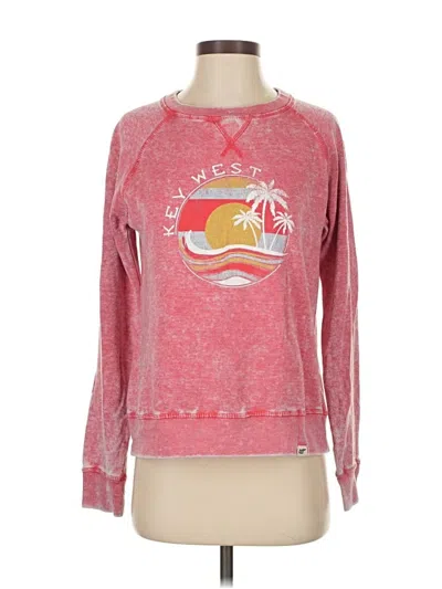 blue 84 Pullover Sweater, Size: Small. Item Details: Pink, Tropical Pattern, Crew Neck, Long Sleeve, Women's Tops, Cotton/Polyester