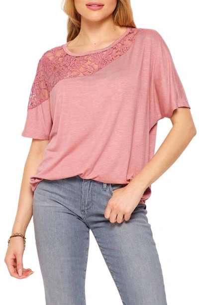 BLUEGREY Lace Drop Shoulder Tee In Rose Dusty