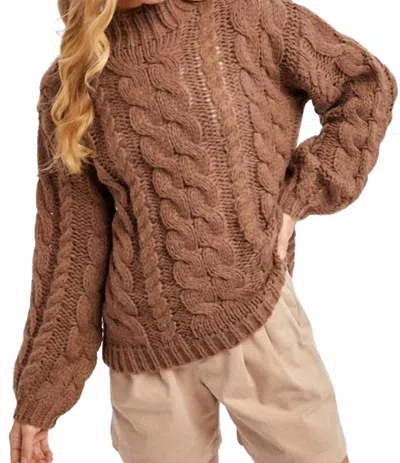 Elsie Chunky Knit Mock Neck Sweater In Mocha In Brown