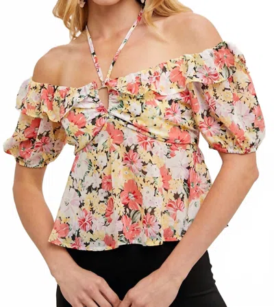 BLUIVY Floral Chiffon Halter Blouse In Multi In Pink