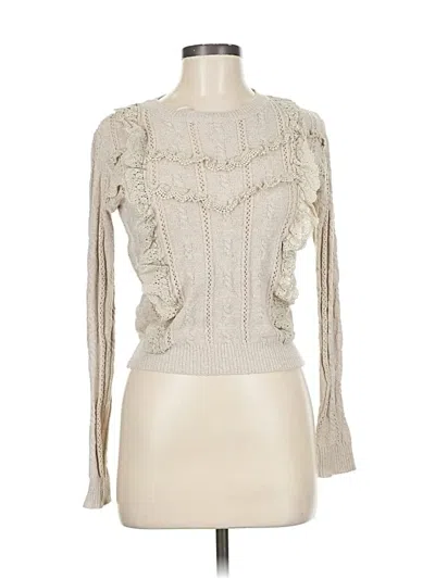 Bluivy Pullover Sweater, Size: Medium. Item Details: Tan, Ruffles Neckline, Long Sleeve, Women's Tops, 100% Acrylic