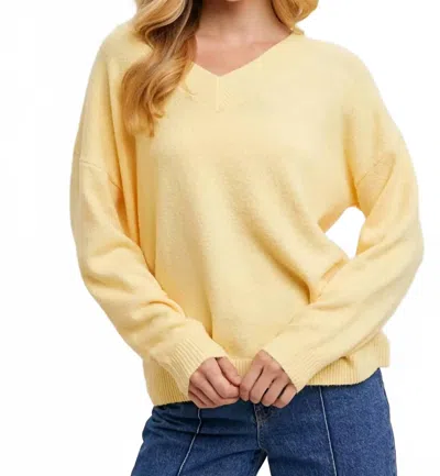 V-neck Soft Knit Sweater Pullover In Yellow
