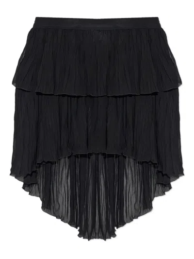 BLUMARINE Asymmetrical Pleated Georgette Skirt With Ruffle In Black