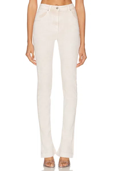 Blumarine Bootcut Leg Jeans in Beige Self 1: 98% cotton 2% elastane Self 2: 100% cotton. Machine wash. Zip fly with button closure. 5-pocket styling. Tonal logo detail at back waist. Stretch denim fabric. BMAF-WJ32. P544J101A. About the designer: