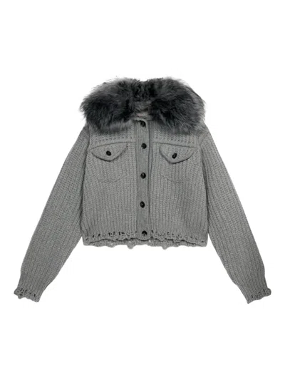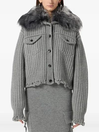 BLUMARINE Cropped Ribbed Cardigan In Gray