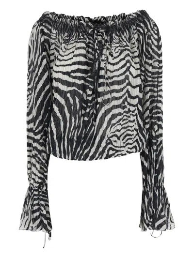 BLUMARINE Women Black And White Blouse With All-over Zebra Print And Boat Neckline In Viscose Woman In Multi