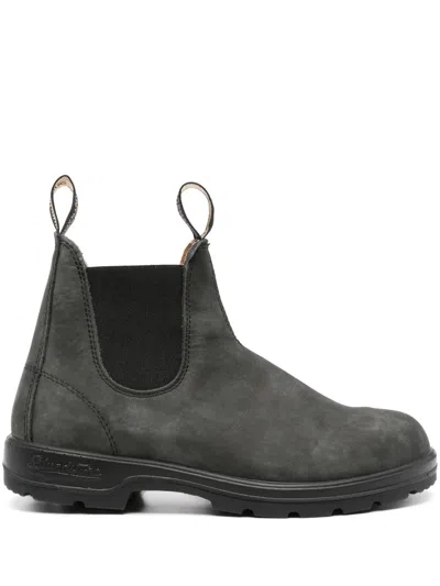 BLUNDSTONE 587 Unisex Rustic Black Leather Round Toe Pull-on Ankle Chelsea Boots In Brown