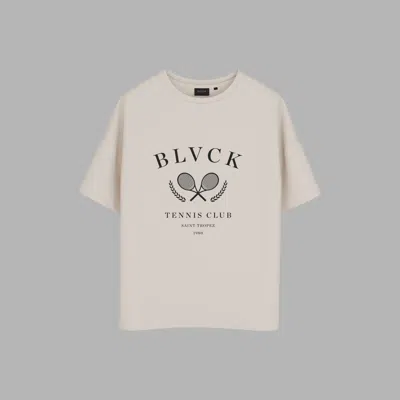Elevate your casual wardrobe with the Blvck Tennis Tee, a minimalist design inspired by timeless tennis aesthetics.Crafted from combed cotton, this tee features a bold "Blvck Tennis Club" print with crossed rackets and laurel accents, embodying sophistication and sport. Available in classic black and cream, it's perfect for both on and off the court.