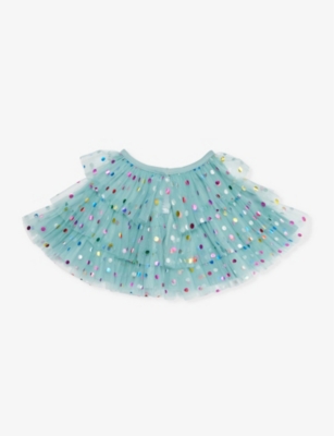 Kids' Polka-dot Ruffled Woven Cape In Turquoise Spot