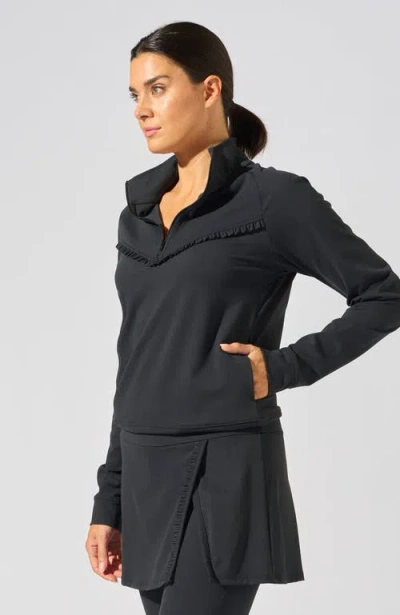 Crafted in Bobbe Active's buttery SoftFlex fabric, this medium-weight 1/4-zip pullover moves with you on and off the court. The short-length top features a sleek mock neck, raglan sleeves, thumbholes, two pockets and subtle ruffle trim. Zipper closure. Machine wash cold separately; hang to dry. Light steam if needed. Do not iron. Machine wash cold separately. Hang to dry. Light steam if needed. Do not iron.