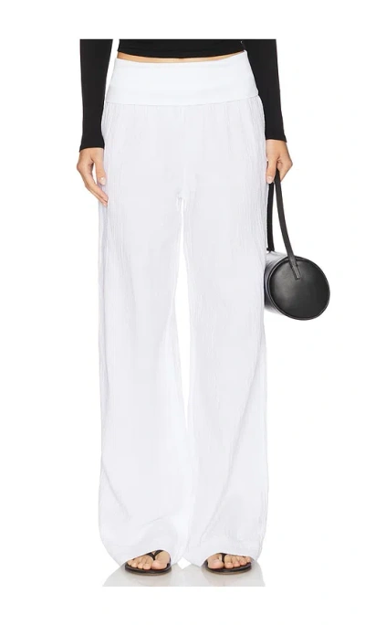 Bobi Pant in White. - size S (also in L, M, XL, XS) Bobi Pant in White. - size S (also in L, M, XL, XS) 100% cotton. Machine wash. Pull-on styling. Foldover waistband styling. Midweight gauze fabric. Garment is made with a semi-sheer fabric, undergarments can show through. 22 at the knee and 22 at the leg opening. BOBI-WP266. 53F-77224. Bobi is an LA-based line of dresses and tees made from some of the highest quality jersey at an affordable price.
