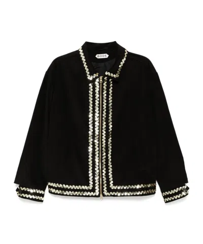 The rippling gold-sequin trim highlighting the classic workwear silhouette of this corduroy jacket is inspired by a vintage matching-band twirler's uniform from the '60s. Two-way front-zip closure Spread collar Inset cuffs Front welt pockets 100% cotton Dry clean Imported Designer Clothing