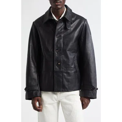 BODE Black Cropped Continental Leather Jacket