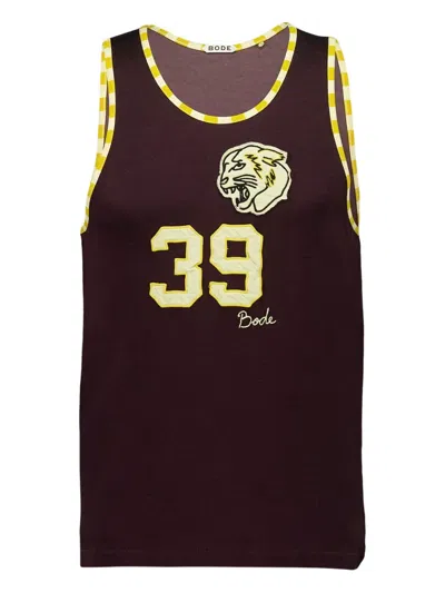 chocolate brown crew neck sleeveless contrasting trim straight hem