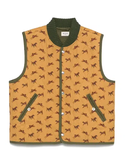 camel brown front press-stud fastening two diagonal pockets to the sides quilted ribbed band collar