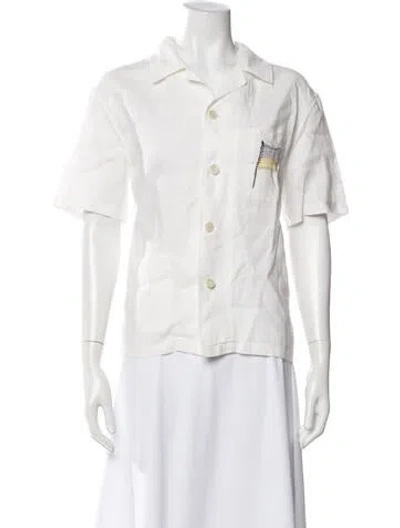 Pre-owned Linen Short Sleeve Button-up Top In White