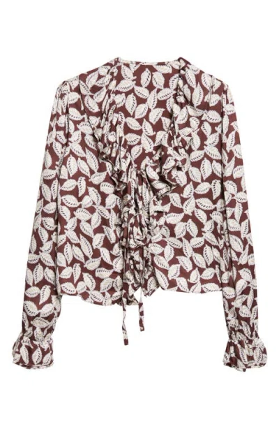 BODE Paper Birch Print Tie Front Top In Multi