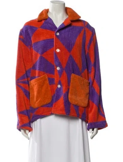 BODE Jacket Orange & Purple Printed Pointed Collar Patch Pockets & Button Closure Fit: Jackets by BODE typically fit true to size. | BODE Printed Jacket in Orange/Purple, Women's M