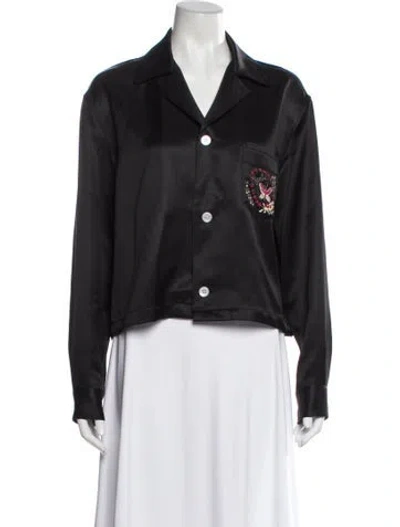 BODE Button-Up Top Grey Printed Long Sleeve with Collar Button Closure at Front Fit: Tops by BODE typically fit true to size. | BODE Printed Long Sleeve Button-Up Top in Grey, Women's XL