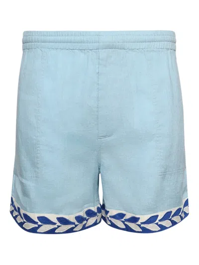 BODE Seedling Leaf-embroidered Elasticated Shorts In Blue