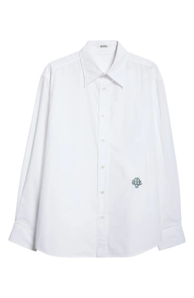 Monogrammed Poplin Shirt By Bode. Featuring: Cotton Shirt Button-down Collar Monogram Embroidered On One Side Button Cuffs Regular Fit Front Button Fastening Model Is 1,90m And Wears Size L. Composition: 100% cotton