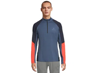 Bogner Fire + Ice Berkan - Men's Clothing : Blue/Grey : ; Express your personality wearing the classy Bogner Fire + Ice Berkan. Made from quick-drying power stretch fabric with softly brushed reverse, this fitted tee features stand-up collar with a short zip with B logo pendant, reflective FIRE+ICE print on the collar and the left side of the chest, reflective stripes on the sleeves, and color-blocking look. ; 85% polyester, 15% elastane. ; Machine washable. ; Imported. Measurements: ; Length: 28 in ; Product measurements were taken using size MD. Please note that measurements may vary by size. | Bogner Fire + Ice Berkan Men's Clothing Blue/Grey : LG, Elastane/Polyester