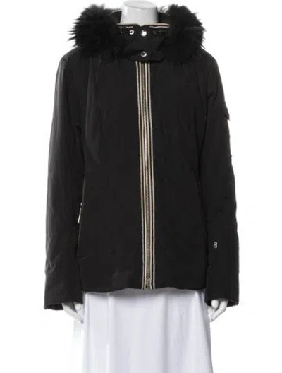 Bogner Jacket Black With Hood Embroidered & Fur Accents Stand Collar Zip Pockets & Zip Closure Fit: Jackets by Bogner typically fit true to size. | Bogner Jacket in Black, Women's L