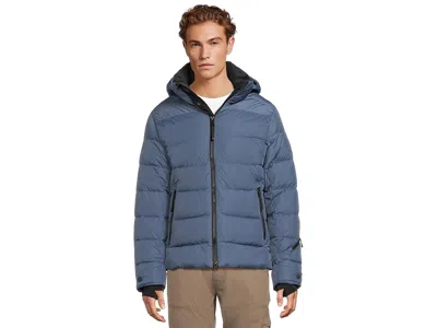 Bogner Fire + Ice Luka2 - Men's Coat : Blue/Grey : ; The primary materials that compose this product contain a minimum of 20 percent recycled content. ; Engineered for thrill-seekers and crafted for comfort, the Luka2 jacket by Bogner Fire + Ice delivers style that moves with you and protection that performs. The straight-cut silhouette offers a sleek, modern fit, while the detachable hood with snap buttons and adjustable cords ensures versatility from slopes to city streets. A two-way zippered closure with signature 'B' pendants and shiny FIRE+ICE print amplifies its premium edge. Built with water-repellent recycled polyamide and THERMORE Ecodown insulation, it promises warmth without the weight. Functional details like multiple zipper pockets, stretch jersey cuffs with thumbholes, and a snow guard with secure snaps keep the elements out and the comfort in. Certified to OEKO-TEX STANDARD 100, this eco-conscious piece redefines performance luxury. ; 100% recycled polyamide. ; Machine washable. ; Imported. ; This product has been certified by one or more industry certifying organization for meeting at least one industry standard for sustainable and ethical products. | Bogner Fire + Ice Luka2 Men's Coat Blue/Grey : 38, Jersey/Polyamide