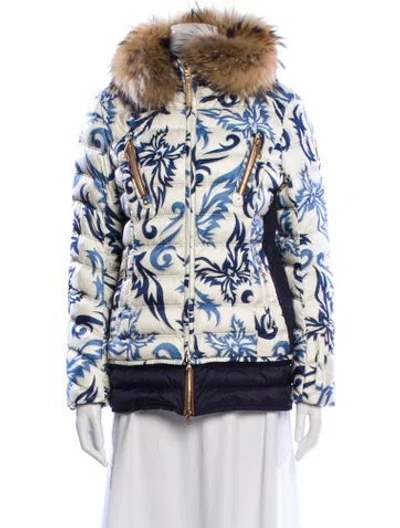 Bogner Down Jacket Blue & White Printed With Hood Stand Collar Zip Pockets & Zip Closure Fit: Jackets by Bogner typically fit true to size. | Bogner Printed Down Jacket in Blue/White, Women's US 10 | L