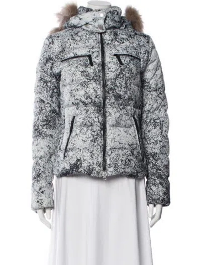 Bogner Fire + Ice Down Jacket Neutrals Printed With Hood Fur Trim & Stand Collar Zip Pockets & Zip Closure Designer Fit: Jackets by Bogner Fire + Ice typically fit true to size. | Bogner Fire + Ice Printed Down Jacket in Neutrals, Women's US 6 | M