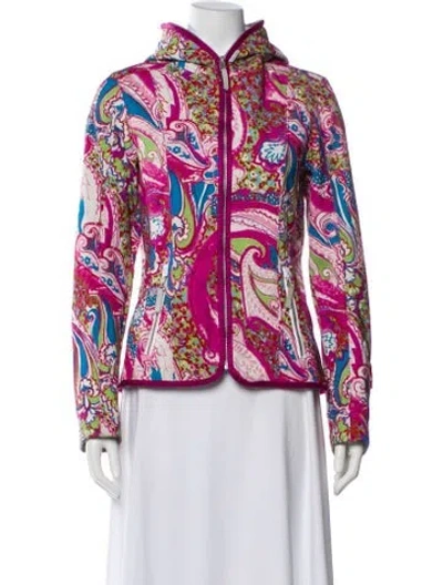 Bogner Fire + Ice Evening Jacket Pink Printed With Hood Stand Collar Zip Pockets & Zip Closure Designer Fit: Jackets by Bogner Fire + Ice typically fit true to size. | Bogner Fire + Ice Printed Evening Jacket in Pink, Women's S