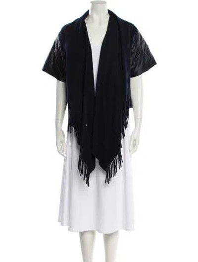 Bogner Wool Jacket Blue Fringe Trim Accent & Shawl Collar Open Front Fit: Jackets by Bogner typically fit true to size. | Bogner Wool Jacket in Blue