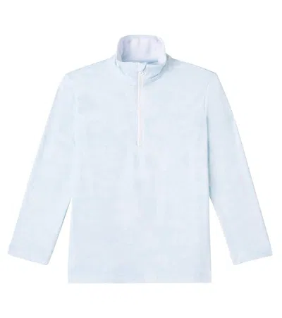 Material: 81% polyester, 19% elastane. Care instructions: machine wash at 30 degrees. Made in Lithuania. Designer color name: Ice Water. Item color: blue, white. Closure: partially zipped front.