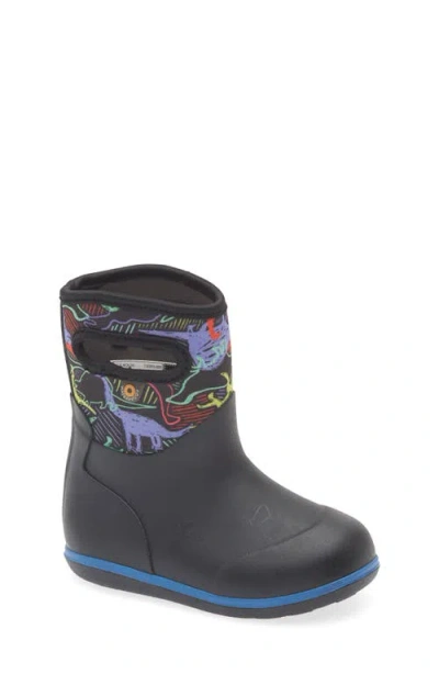 BOGS Kids' Classic Solid Waterproof Rain Boot In Black Neon Dino Multi