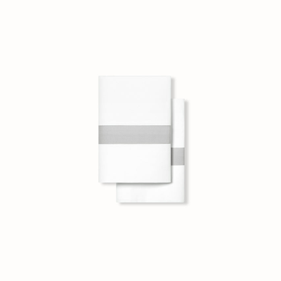 BOLL & BRANCH Organic Percale Banded Pillowcase Set In White/pewter