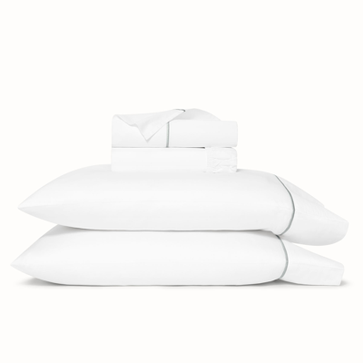 BOLL & BRANCH Organic Signature Embroidered Sheet Set In White/shore
