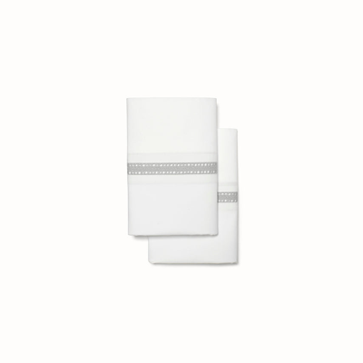 BOLL & BRANCH Organic Signature Eyelet Pillowcase Set In White/pewter Eyelet