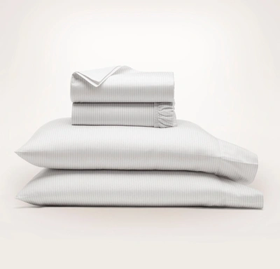 BOLL & BRANCH Organic Signature Patterned Sheet Set In White/mineral Delicate Stripe [h