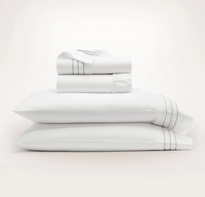 BOLL & BRANCH Organic Signature Triple Framed Sheet Set In White/pewter Triple Framed [hidd