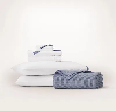 Refresh your bed with summer's newest hand-finished embellished designs, all in the fabric loved for its crisp, cooling feel. Each essential of this 3-piece bundle starts with the highest quality threads sourced from the finest long-staple 100% organic cotton on earth: our new Waffle Whipstitch Bed Blanket is beloved for its breathable weight and touchable texture, and our cooling Percale Sheet Set is meticulously spun with precision to ensure it feels incredible for years to come.