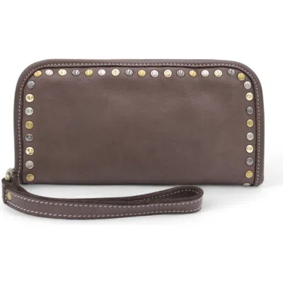 Crafted from washed Italian leather, this buttery-soft wallet combines practicality with an elegant design. It features ample space for all your essentials, including most mobile phones. Two gusset pockets for versatile storage Twelve credit card slots and a zippered change pocket Matching wristlet strap for added convenience Multi-colored stud hardware Cotton lining Clean with a damp cloth or with high-quality leather cleaner Made in Italy 8.25" L x 4.5" H x 1.25" D