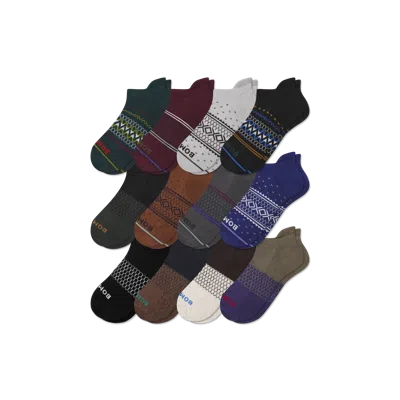 Get your dream sock drawer: filled with comfortable Bombas. Live your life filled with way more color, way more comfortable, and a lot less time spent doing laundry. One purchased = one donated. Men's Ankle Sock 12-Pack - Espresso Pine Mix - Large - Cotton Blend - Bombas