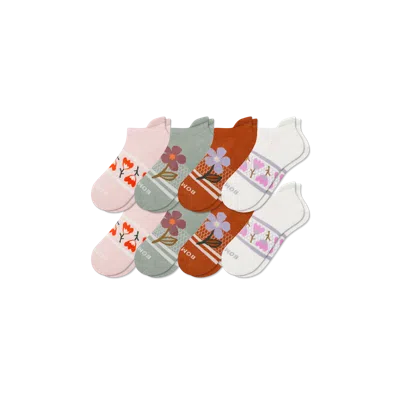 Get your dream sock drawer: filled with comfortable Bombas. Live your life filled with way more color, way more comfortable, and a lot less time spent doing laundry. As always, one purchased = one donated. Women's Ankle Sock 8-Pack - Sage Floral Mix - Medium - Cotton Blend - Bombas