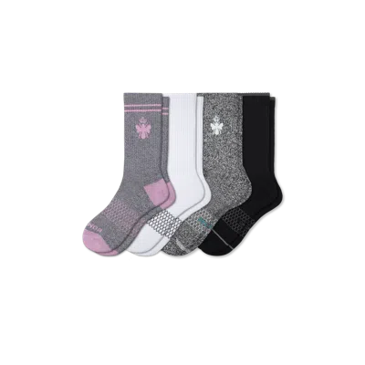 You do a lot, so we made a pack that makes everything you do a whole lot comfier. There’s a classic Calf Sock for everyday coverage, a pair of Merinos for moments that call for extra warmth, Originals for when you need something a little different, and sweat-wicking All-Purpose Performance Socks for every activity in between. Women's Calf Sock Starter 4-Pack - Multi - Medium - Merino Wool Blend - Bombas