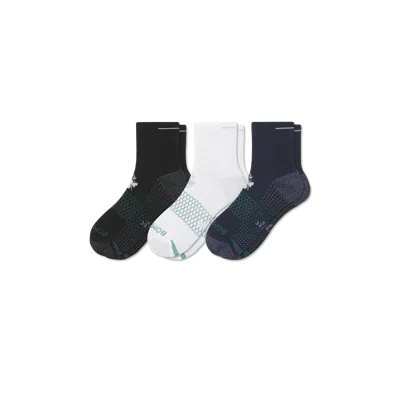 Midweight purpose-built socks with strategic zone cushioning for all-day comfort on the links. Thermoregulation helps your feet breathe, and moisture-wicking keeps sweat away from your body. Made with a proprietary cotton-poly yarn blend that performs but feels natural. There's also a mesh under-toe ventilation zone, an area where feet tend to overheat the most. Women's Golf Quarter Sock 3-Pack - Mixed - Medium - Cotton Blend - Bombas