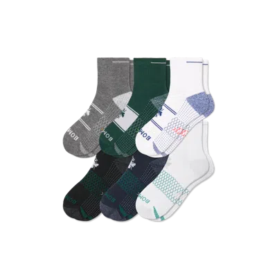 Your feet are the foundation of balance, stability, and power in your swing. These socks are engineered with strategic cushioning for optimal comfort—for both walking the course and the torque generated from a centered, grounded swing. They’re durably built with our Softec Yarn that wicks sweat with enhanced mesh ventilation, to keep fresh from tee to green. Men's Golf Quarter Sock 6-Pack - Green Core Mix - Extra Large - Cotton Blend - Bombas