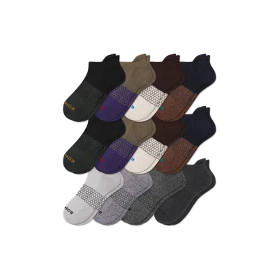 Classic colors, Marl yarn twist. Borrowing a centuries-old technique from scarves and sweaters, we knit two yarns together to make a new beautiful multi-textured mega-color. We call them, Marls. One Purchased = One Donated Men's Marl Ankle Sock 12-Pack - Espresso Shades Mix - Large - Cotton Blend - Bombas