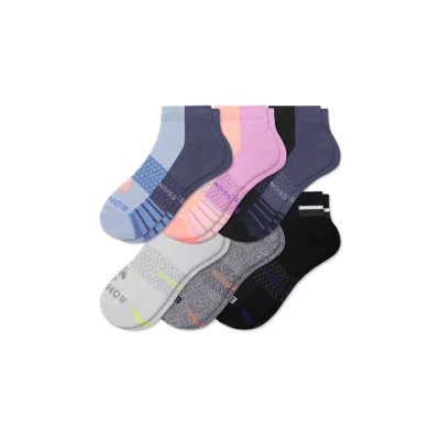 These pairs don’t just keep your feet cool and dry—they also help relieve soreness with a graduated level of compression. That extra support is great if you enjoy running, cycling, and training for any big goals. Women's Performance Compression Ankle Sock 6-Pack - Peach Blue Mix - Medium - Cotton Blend - Bombas