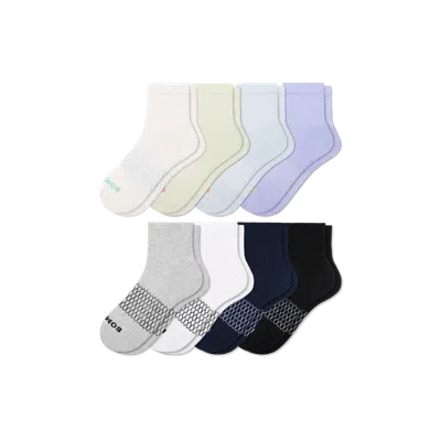 Get your dream sock drawer: filled with comfortable Bombas. Live your life filled with way more color, way more comfortable, and a lot less time spent doing laundry. One Purchased = One Donated Women's Quarter Sock 8-Pack - Cloud Mint Mix - Large - Cotton Blend - Bombas