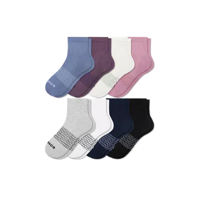 Get your dream sock drawer: filled with comfortable Bombas. Live your life filled with way more color, way more comfortable, and a lot less time spent doing laundry. One Purchased = One Donated Women's Quarter Sock 8-Pack - Plum Shadow Multi - Large - Cotton Blend - Bombas